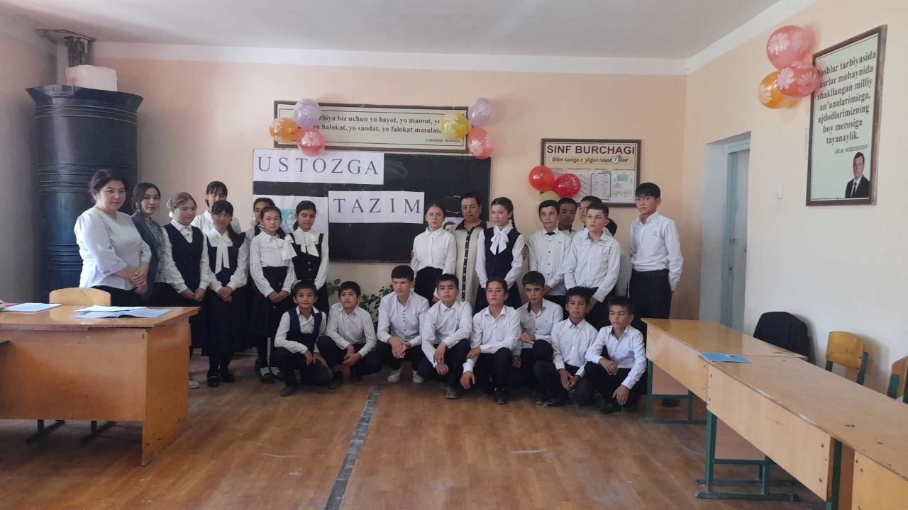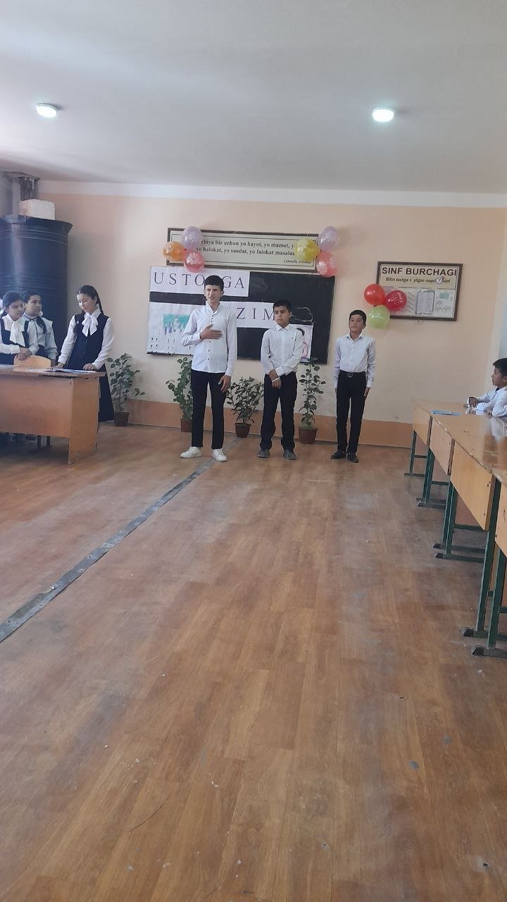 Maktab haqida 30-09-2023, 16:00 Maktabimizning 7-b sinf òquvchilari ishtirokida "USTOZGA TA'ZIM"nomli tadbir bólib òtdi.